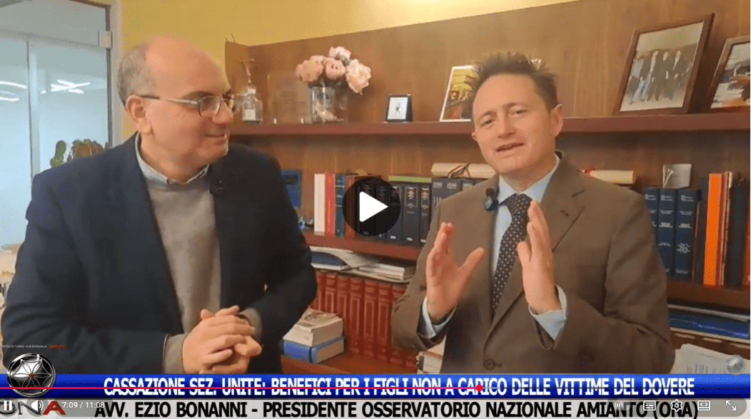 Vedi l’intervista rilasciata dall’Avv. Ezio Bonanni al giornalista Luigi Abbate sul riconoscimento dei diritti dei figli delle Vittime del Dovere: